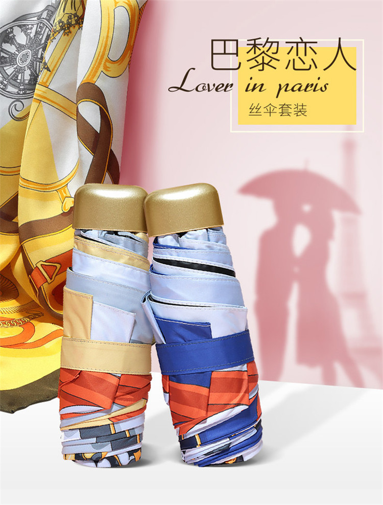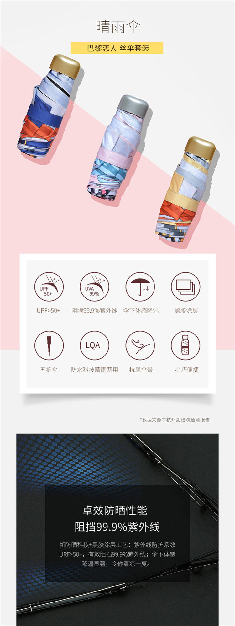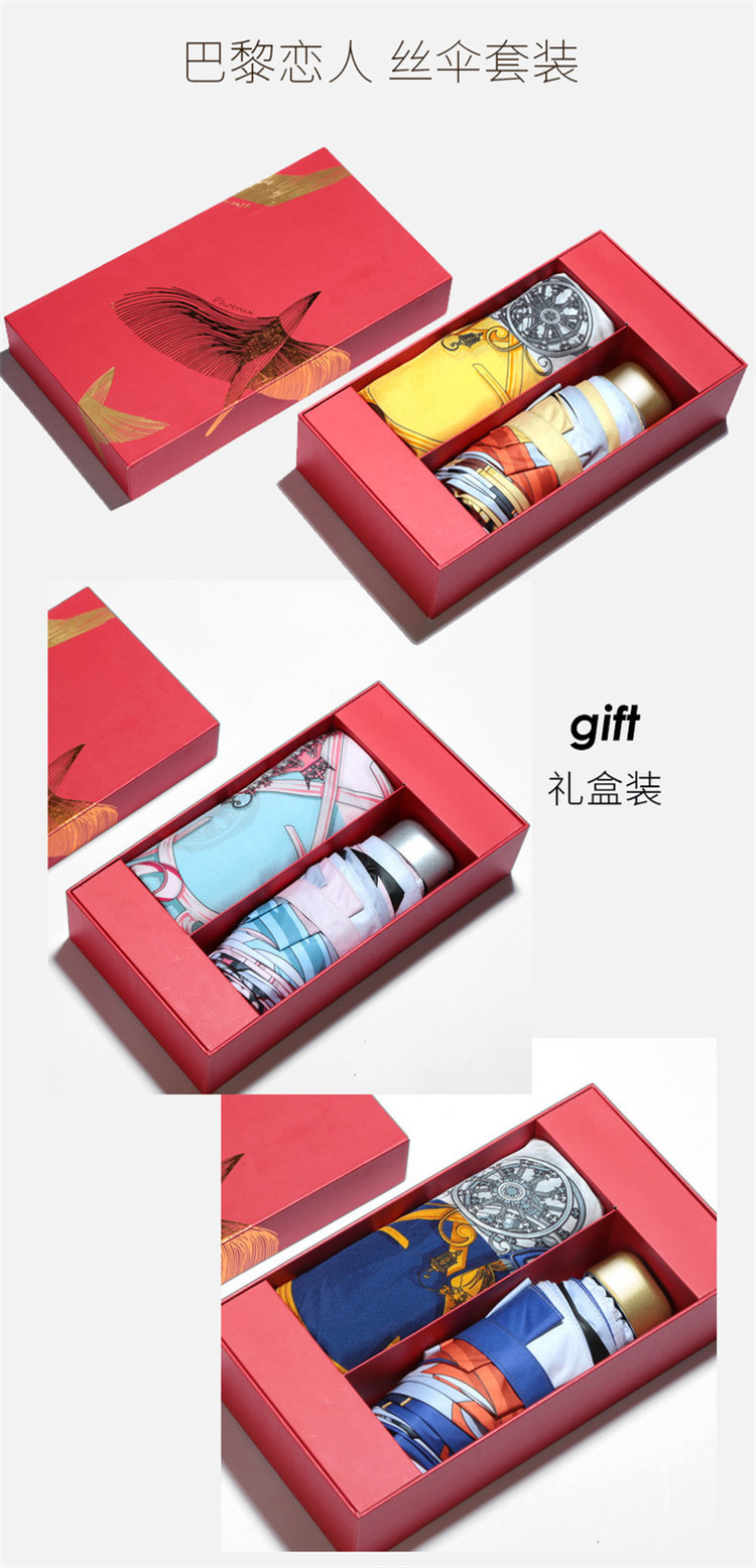 商品名称:Wensli/万事利 巴黎恋人丝巾雨伞套装(黄/粉/蓝)颜色随机 随机