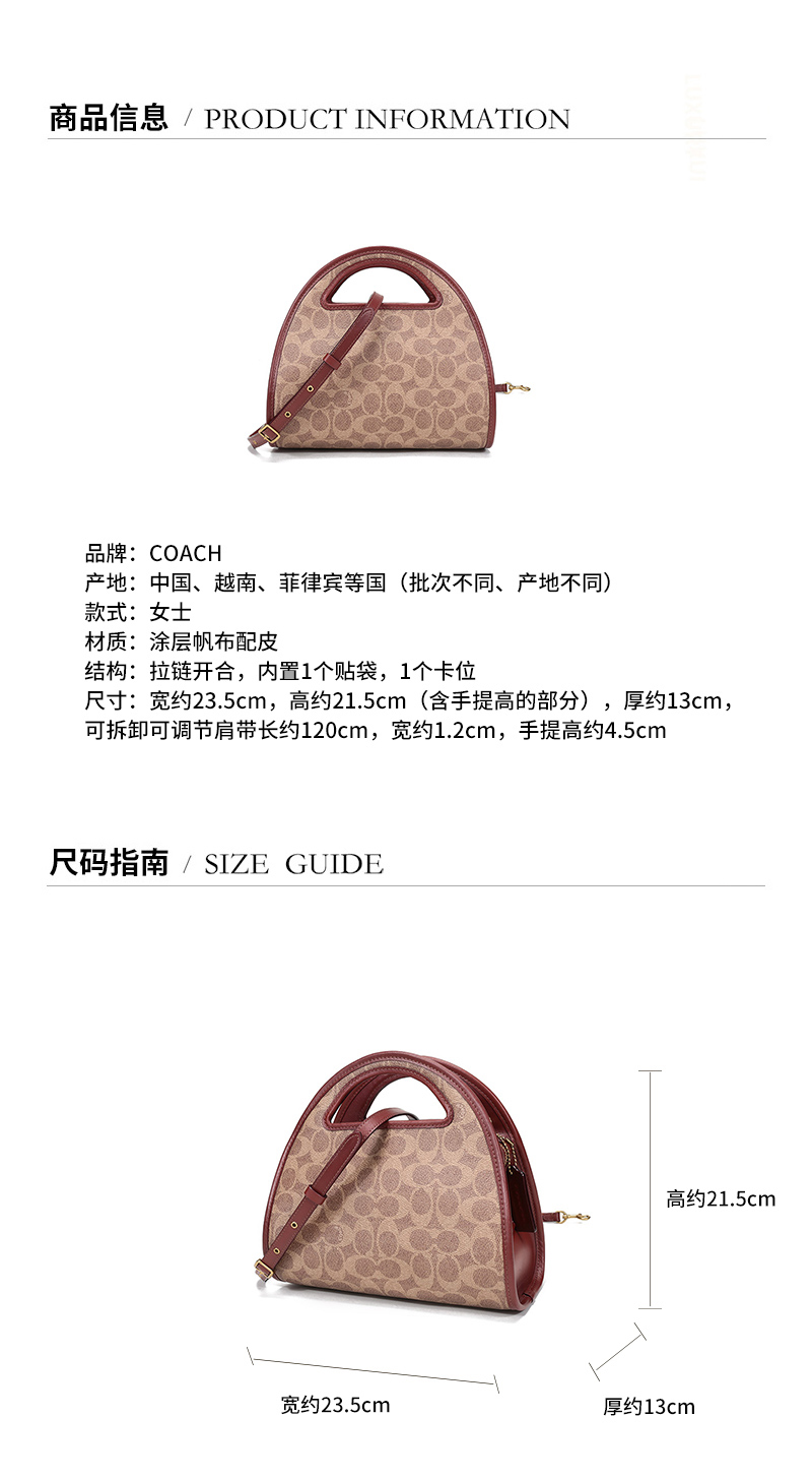 商品名称:Coach 蔻驰 涂层帆布配皮手提单肩斜挎包 Z11100493206 棕色