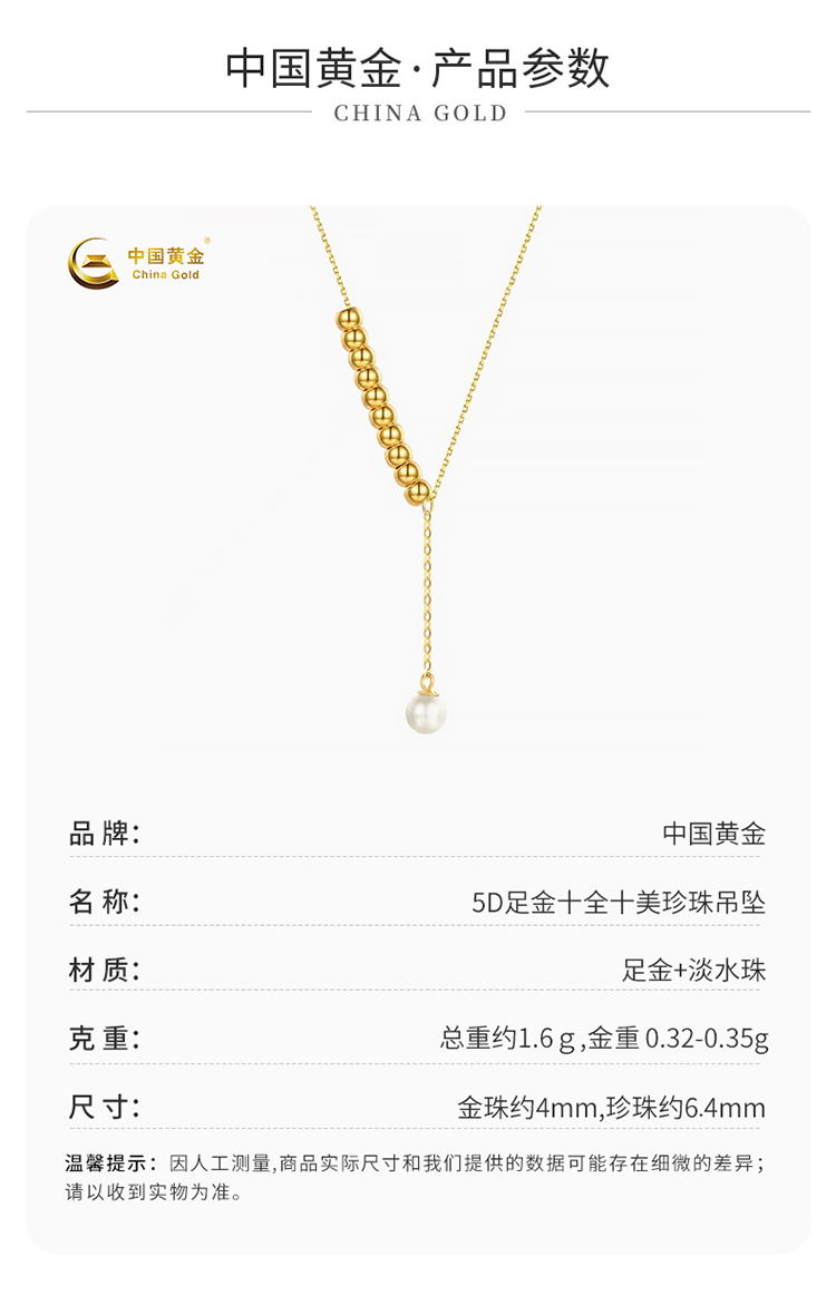 商品名称:中国黄金 5D黄金足金999十全十美珍珠吊坠+S925银链子ZGHJ220564 金色