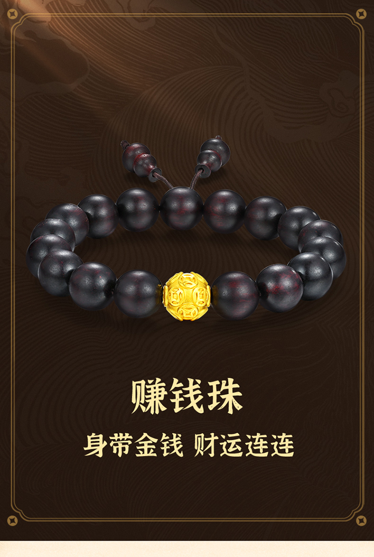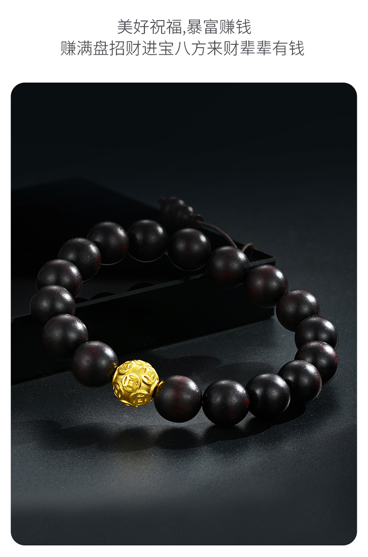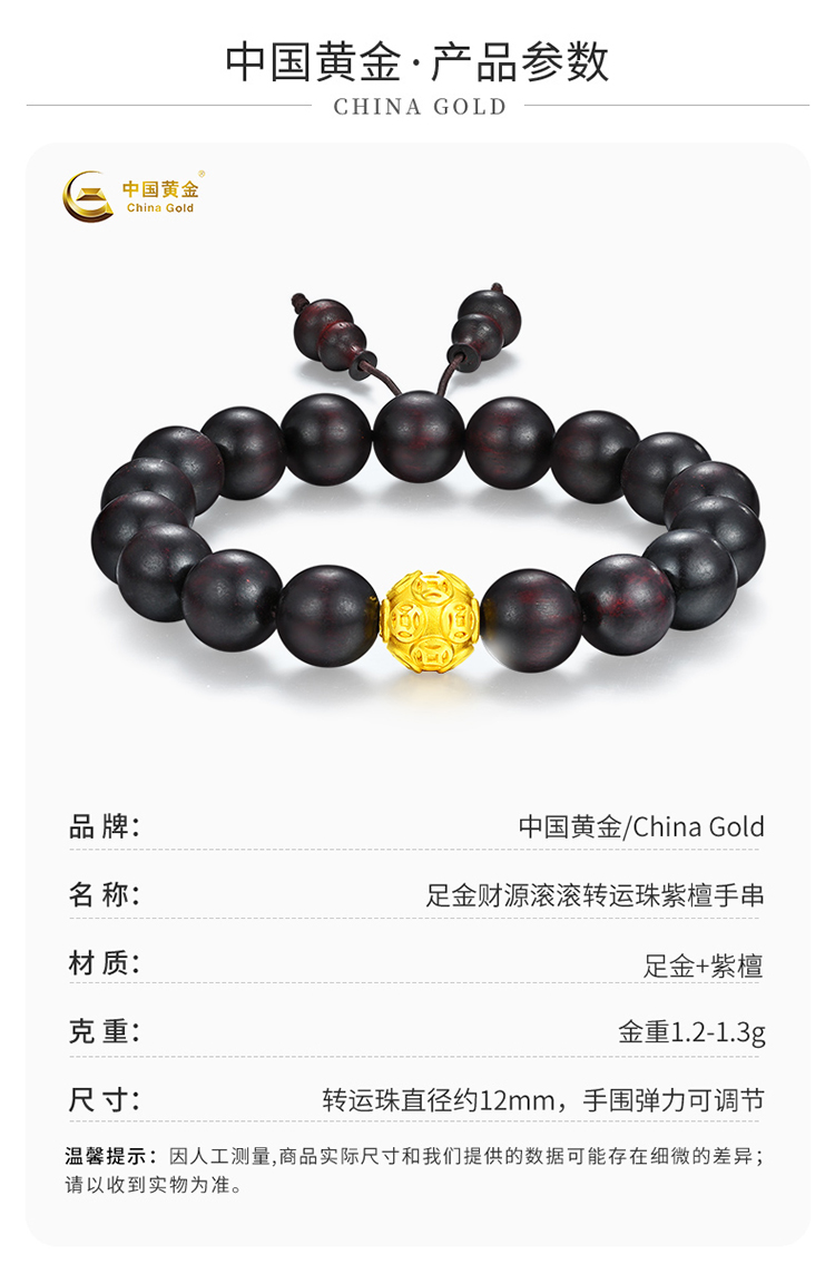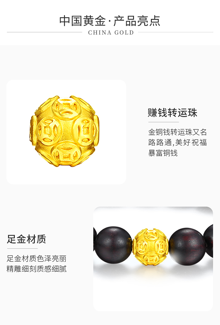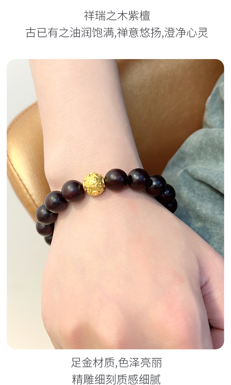 商品名称:中国黄金 黄金足金999赚钱珠紫檀手串 ZGHJ230262(单位:件) 金色