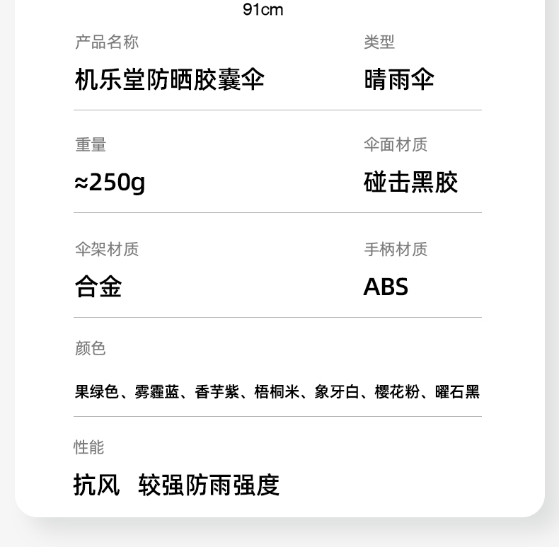 商品名称:机乐堂伞柄隐藏式素色伞JR-CY567(单位:个) 粉色