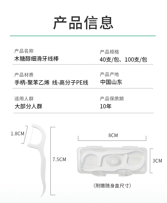 商品名称:桃薇薇牙线棒100支*3包木糖醇薄荷精华 本白色