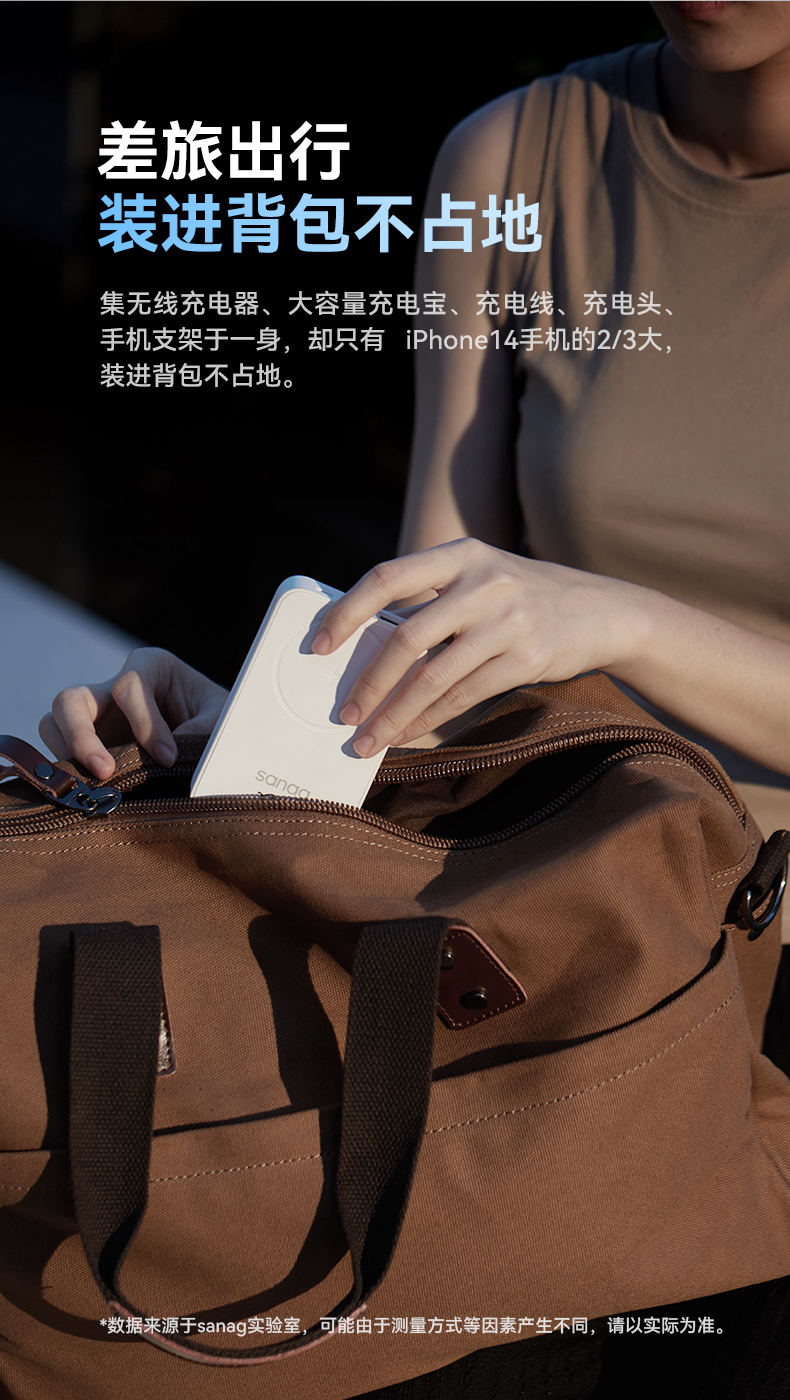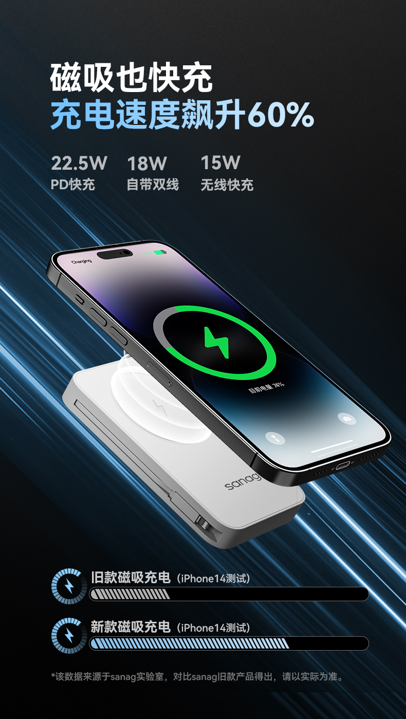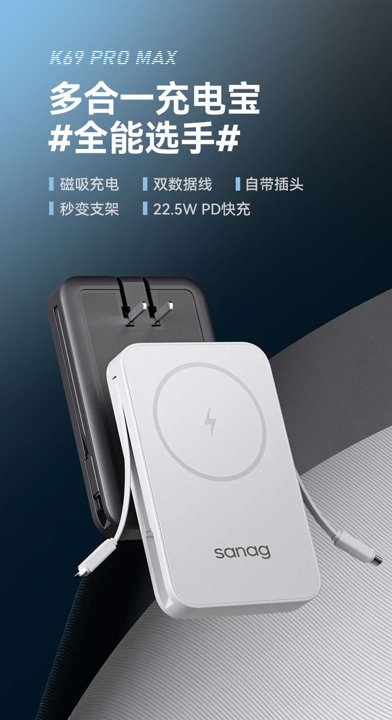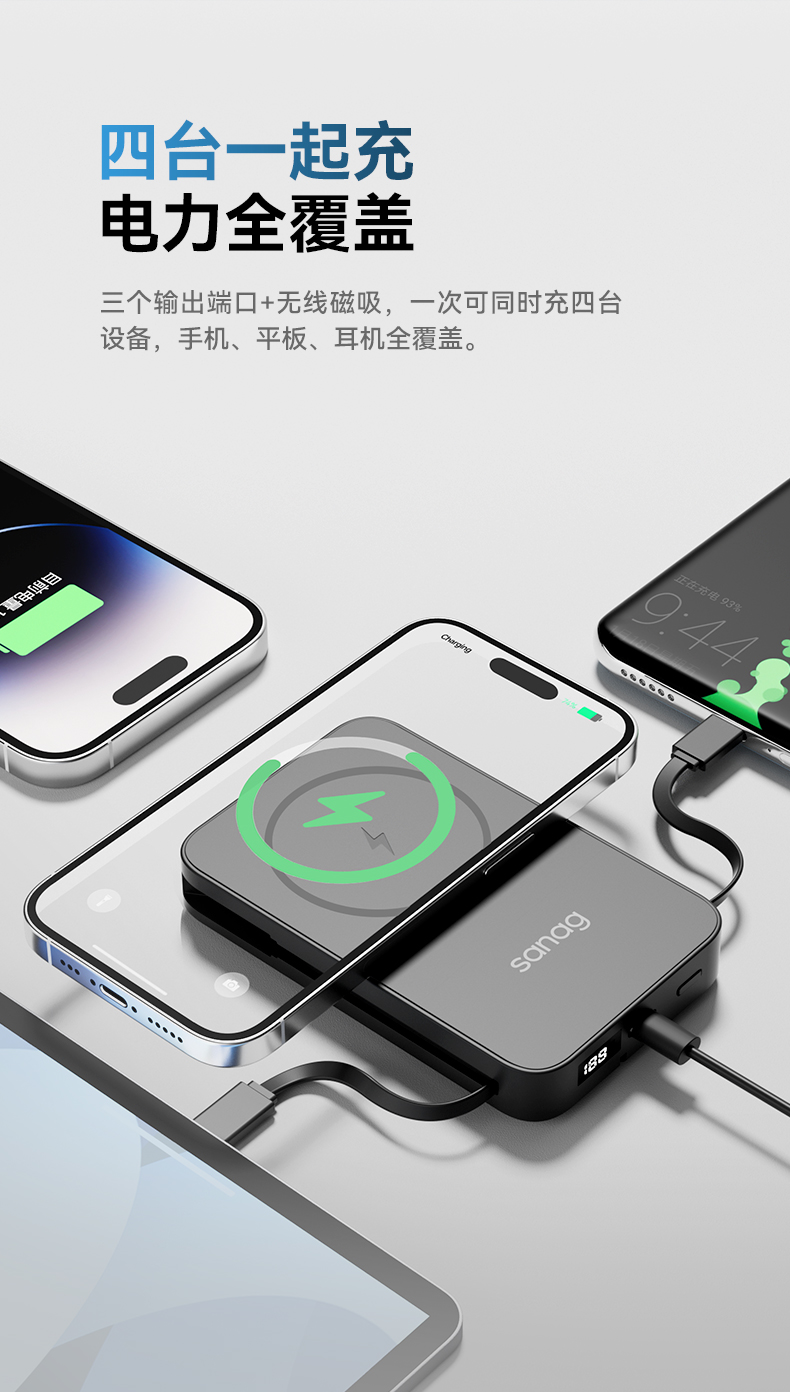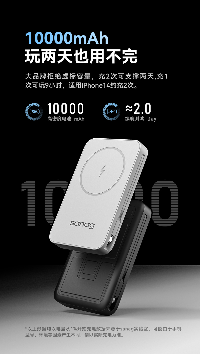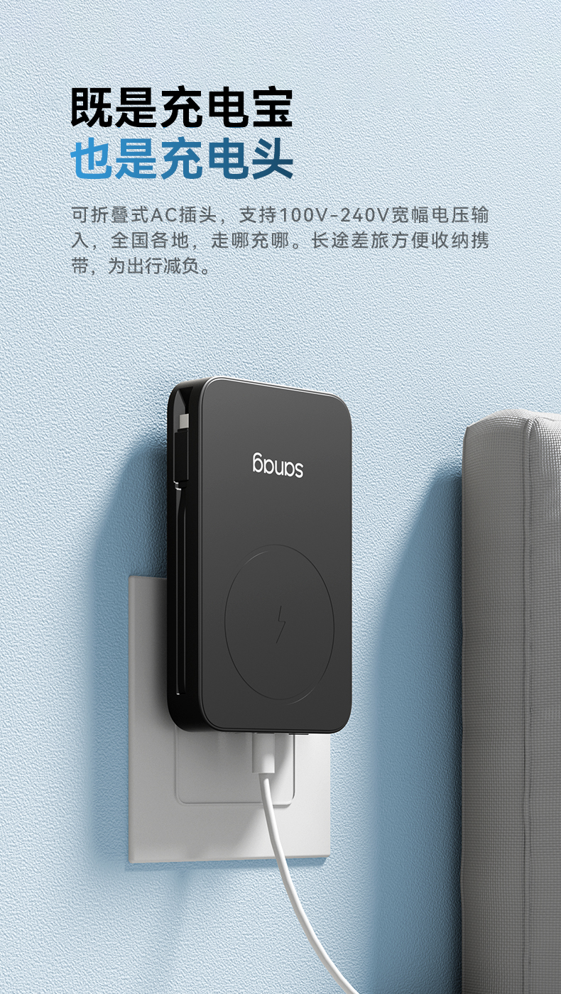 商品名称:sanag磁吸充电宝自带线二合一插头AC双向快充magsafe超薄小巧适用于iphone单位:个 蓝色
