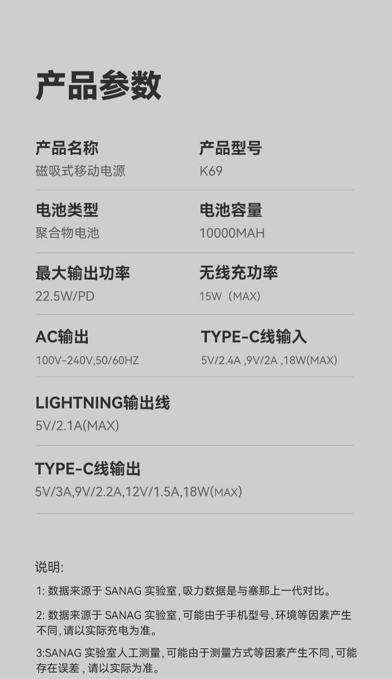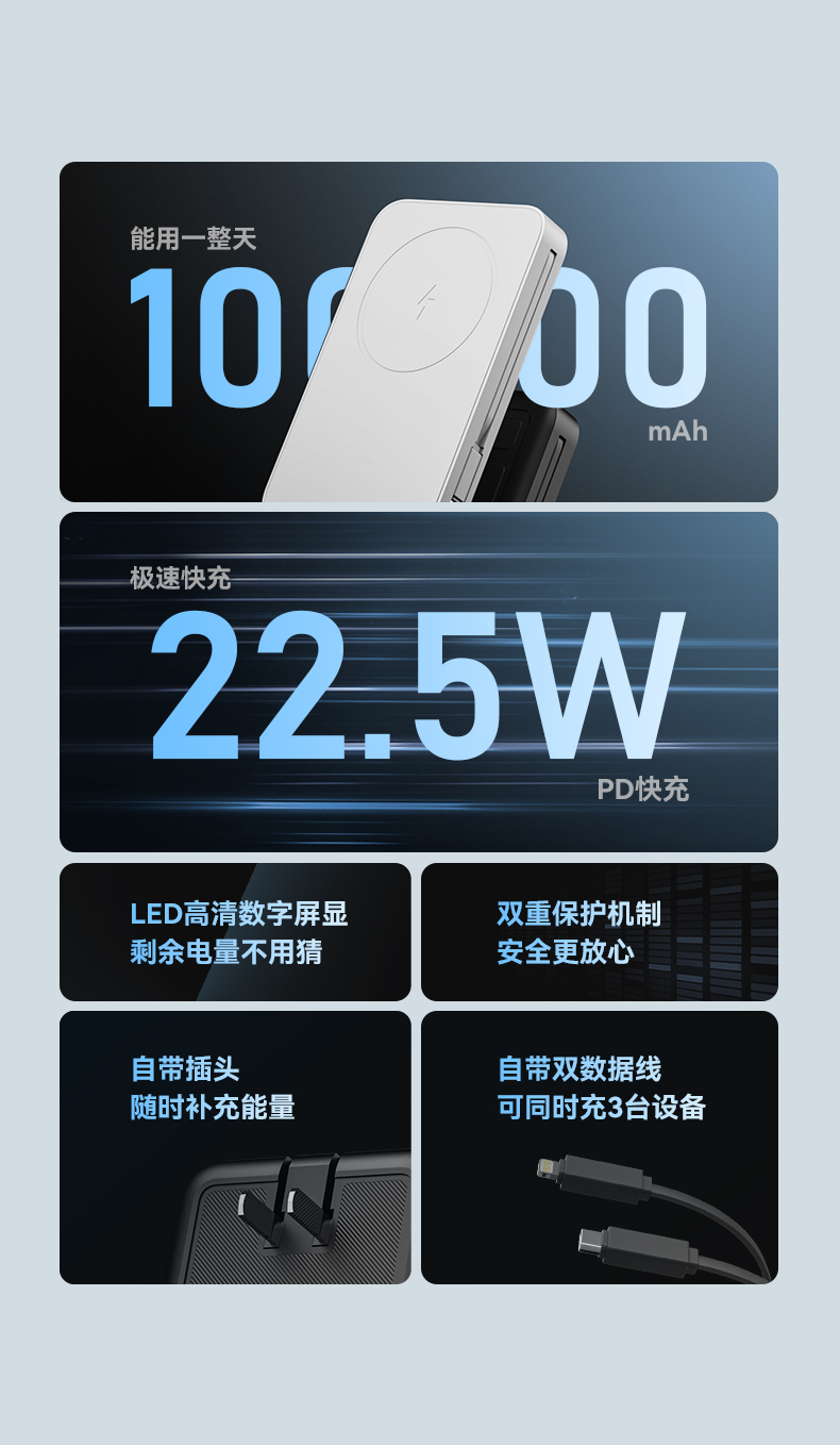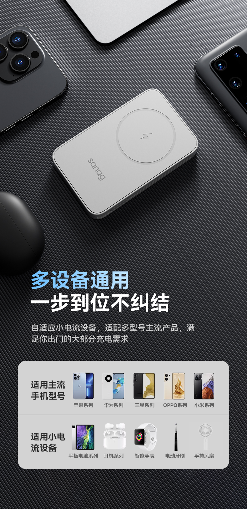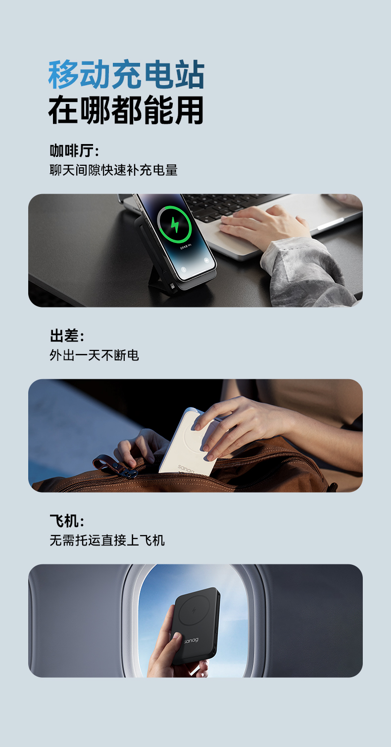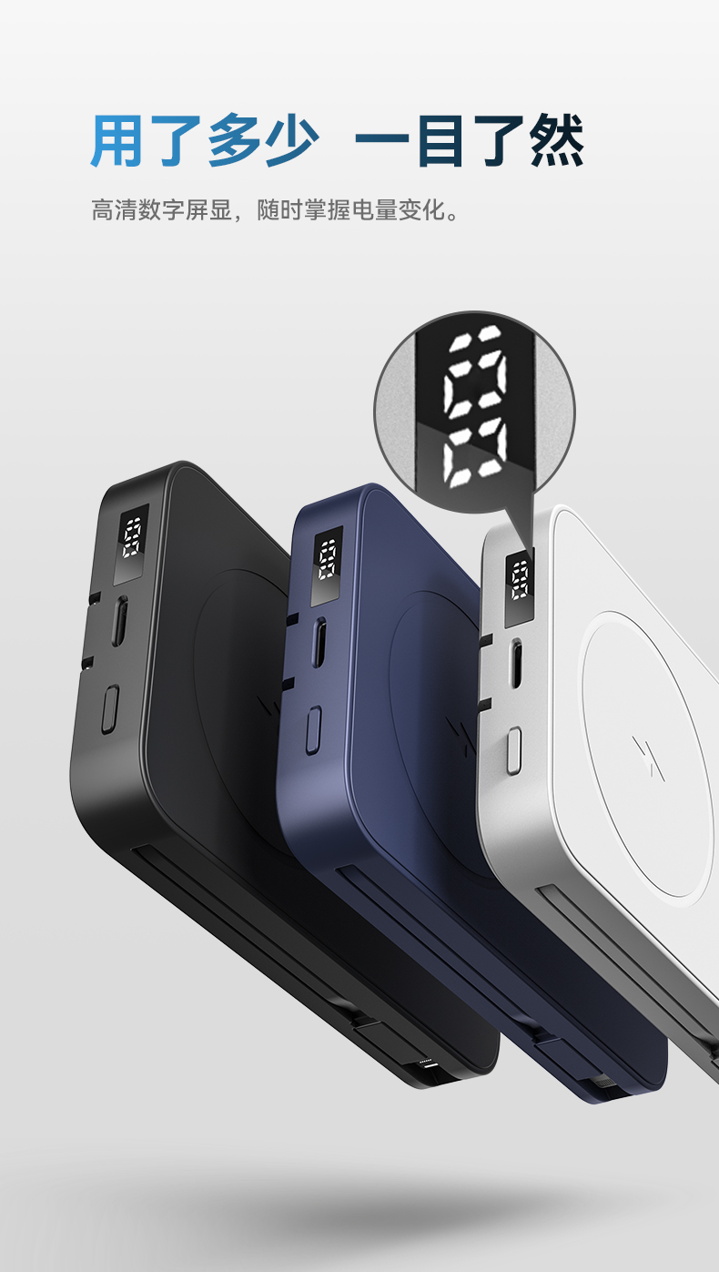 商品名称:sanag磁吸充电宝自带线二合一插头AC双向快充magsafe超薄小巧适用于iphone单位:个 蓝色
