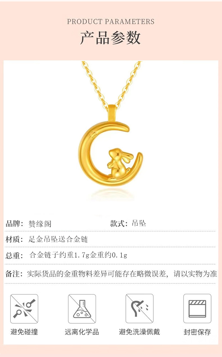 商品名称:赞缘阁黄金足金望月兔吊坠YL003(单位:件) 黄色0.1-0.13g