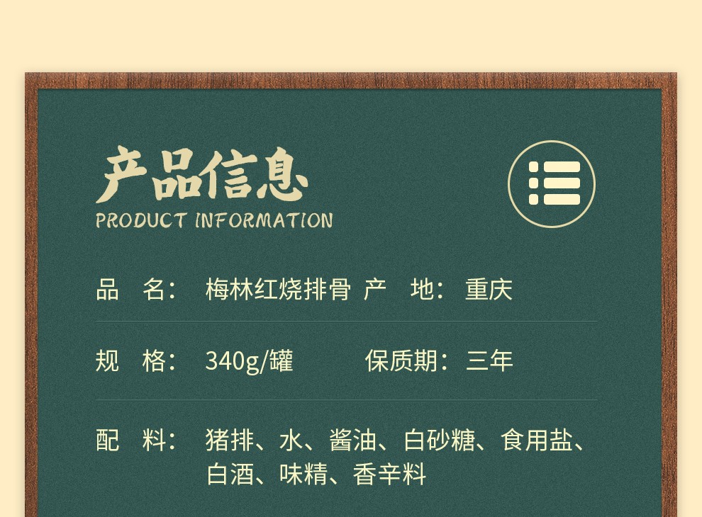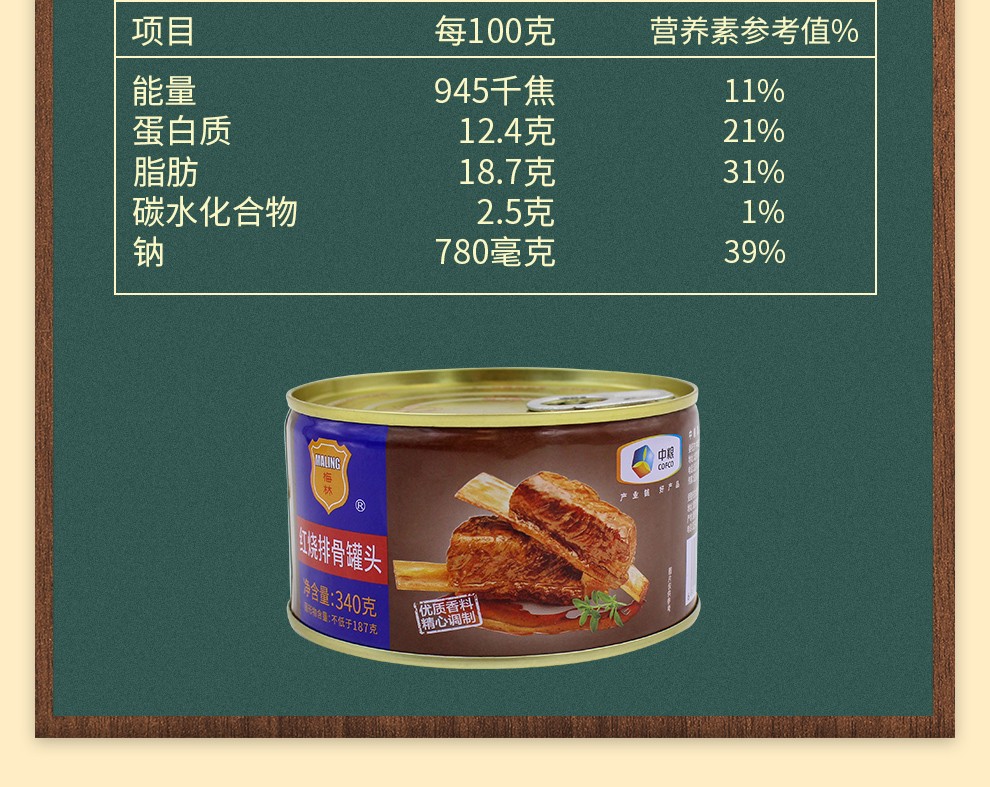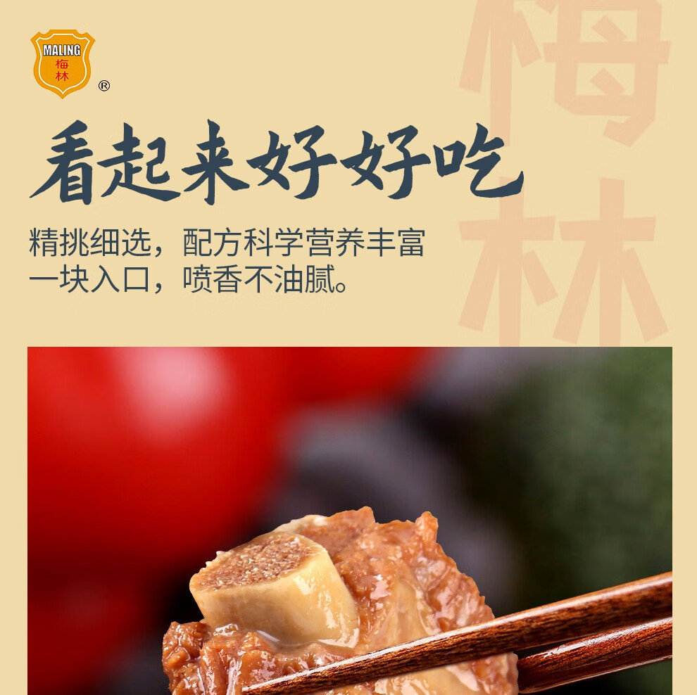 商品名称:中粮梅林红烧排骨罐头340g*2罐 彩色