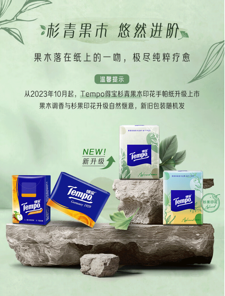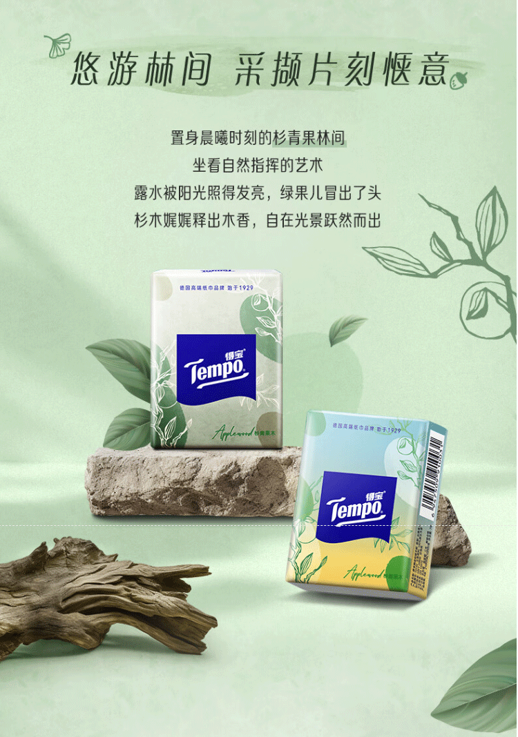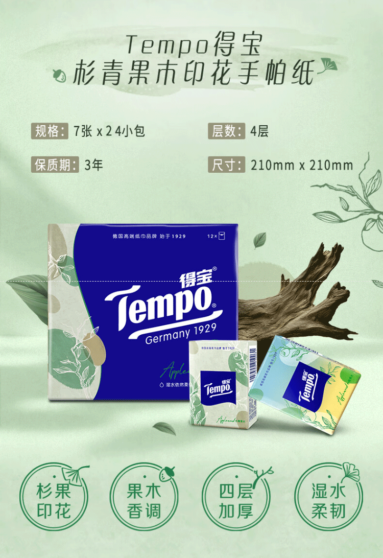 商品名称:得宝(TEMPO)手帕纸 苹果木味4层7张*24包(单位:包) 本白色