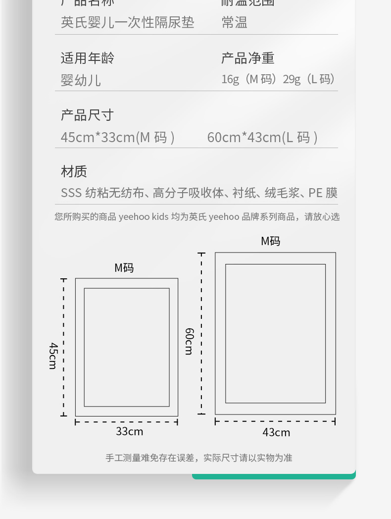 商品名称:英氏隔尿垫婴儿一次性 ND01A M码20片(单位:包) 白色