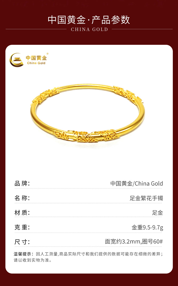 商品名称:中国黄金 足金繁华手镯60# ZGHJ240744-2(单位:件) 金色