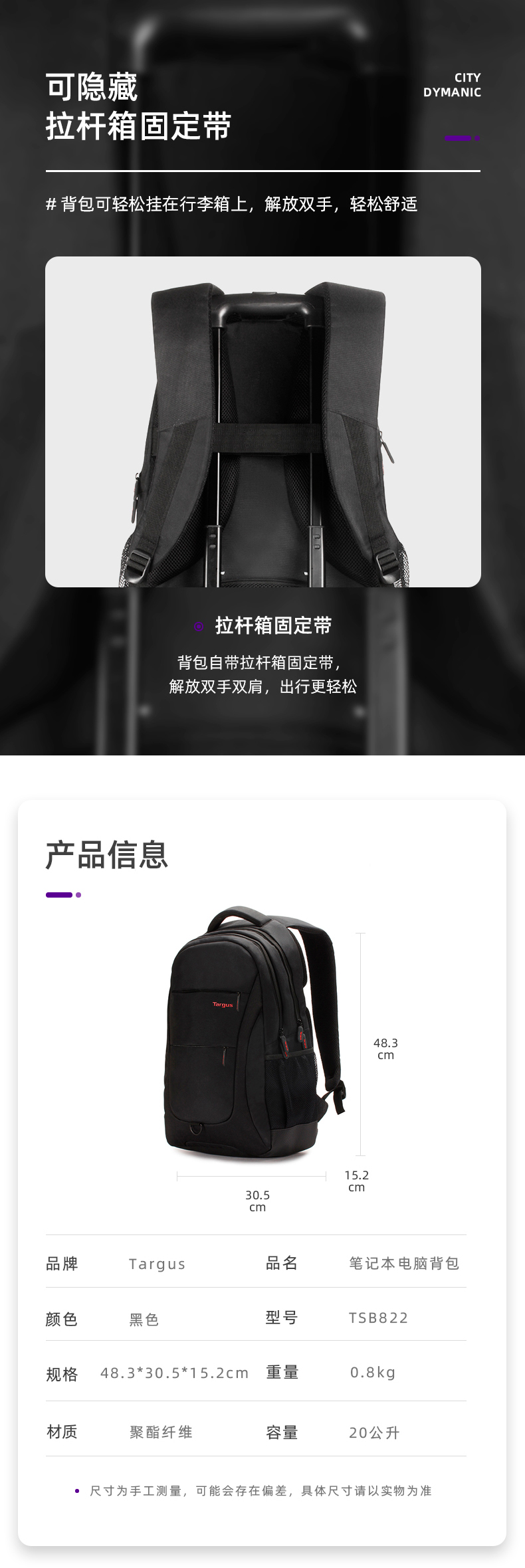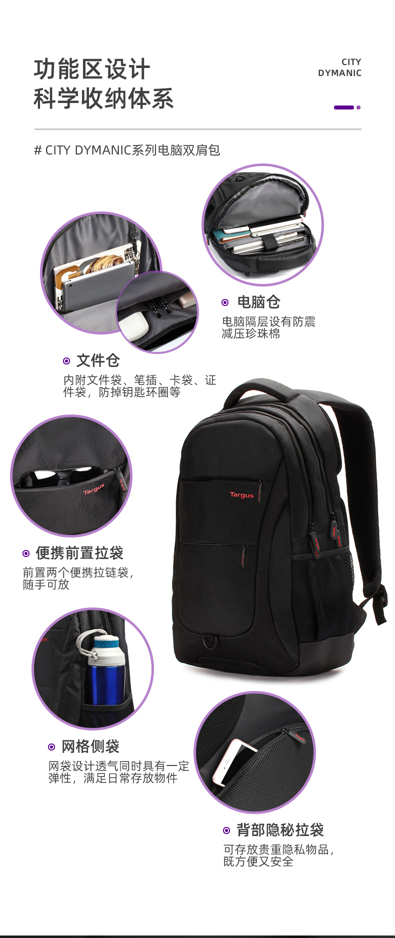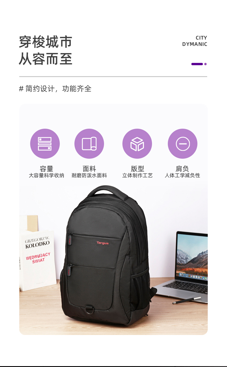 商品名称:泰格斯 TSB822 15.6英寸 双肩电脑包 黑色(单位:个)