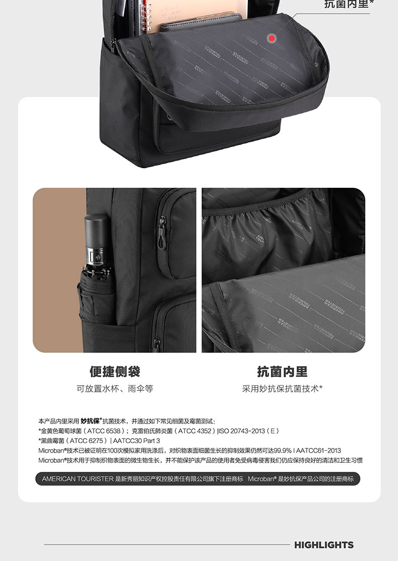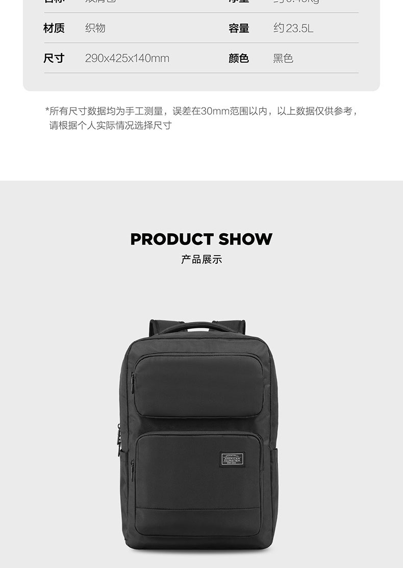 商品名称:美旅 NI0*09001 290*425*140 双肩包 黑色(单位:个)