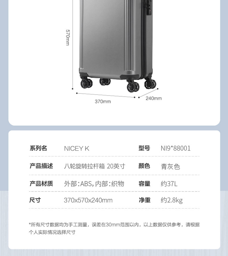 商品名称:美旅 NI9*88001 57/20 拉杆箱 灰色(单位:个)