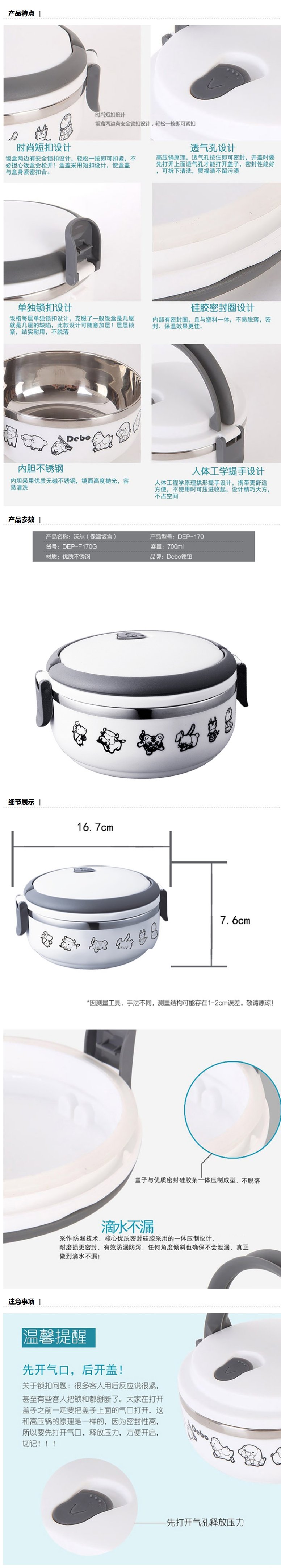 商品名称:德铂Debo沃尔保温饭盒,不锈钢单层卡通儿童学生饭盒密封700mlDEP-170