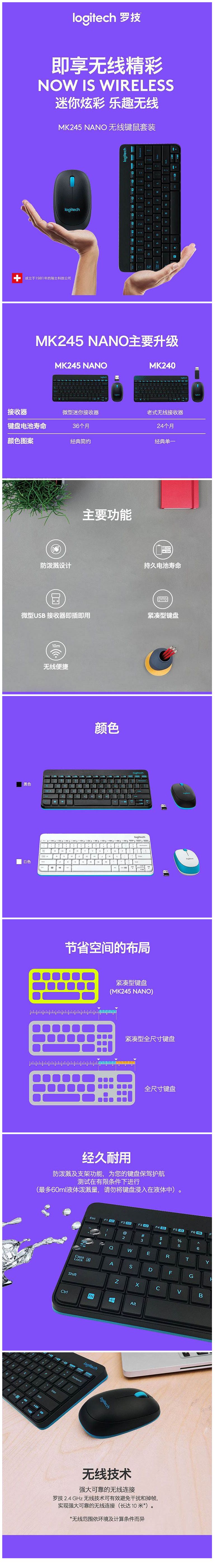 商品名称:罗技 MK245 nano 键鼠套装 (单位:套)白色