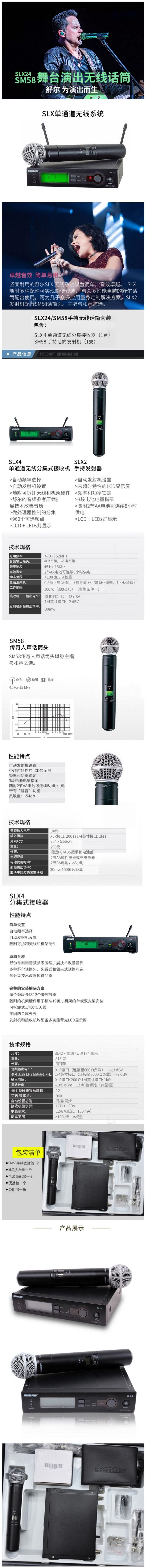商品名称:舒尔 SLX24/SM58 无线一拖一专业动圈无线手持麦克风(套)