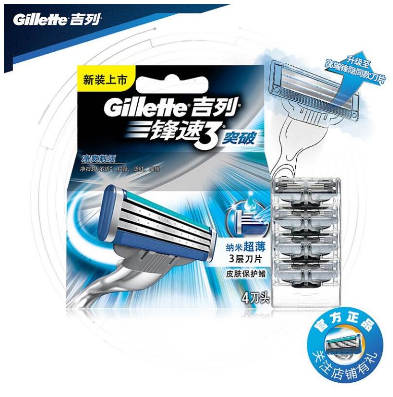 商品名称:吉列锋速3突破刀片(4刀头)手动剃须刀刀片(套)
