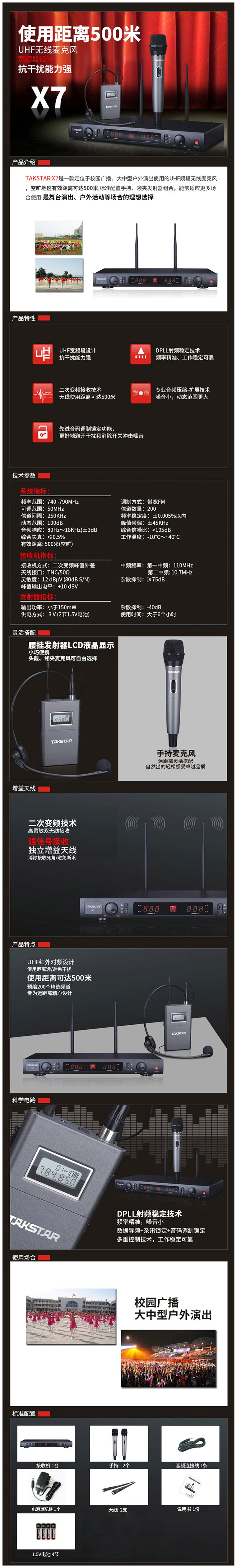 商品名称:得胜X7长距离无线麦克风标配2麦克风(单位:个)