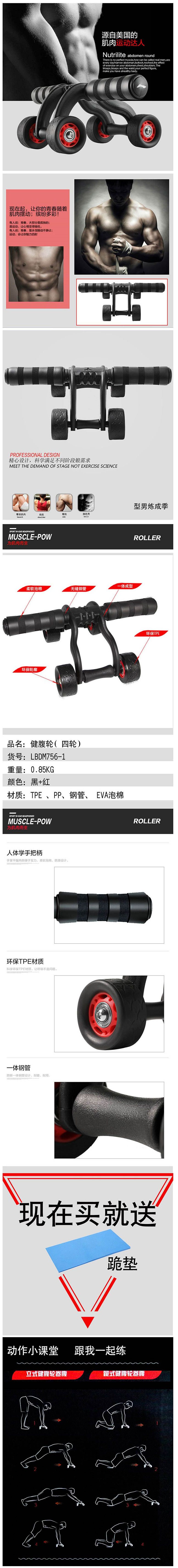 商品名称:李宁LBDM756-1四轮健腹轮(个)
