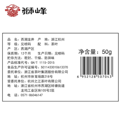商品名称:狮峰50g西湖龙井国韵青瓷礼盒50g(单位:盒)