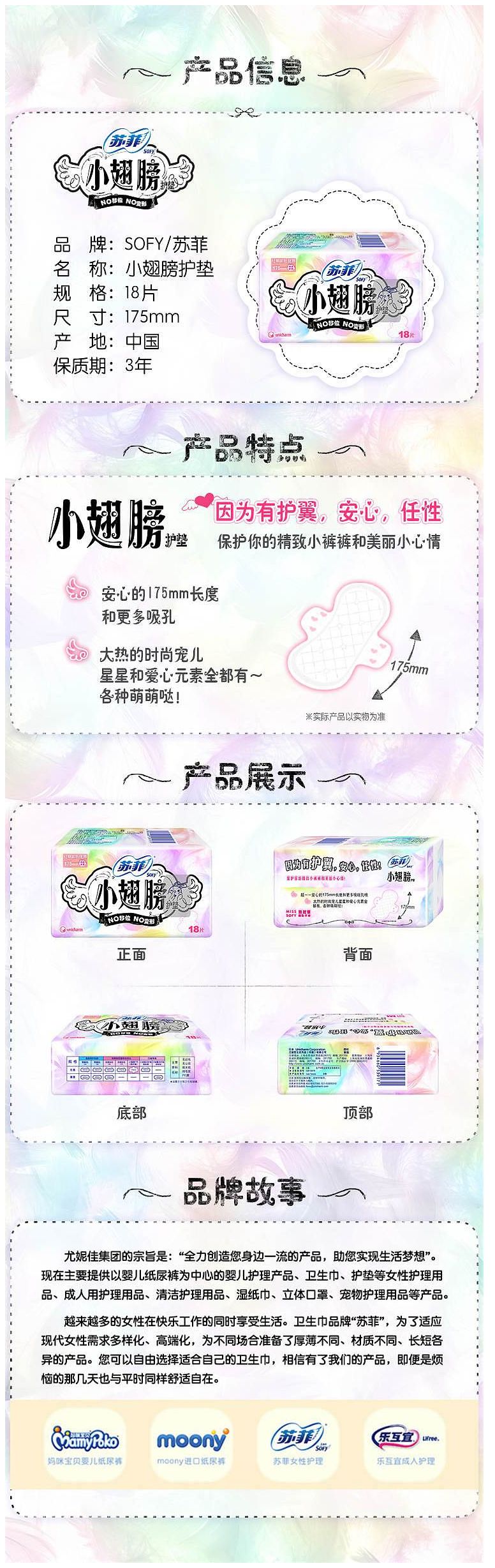 商品名称:苏菲小翅膀无香棉柔卫生护垫175mm,18片 (单位:包)
