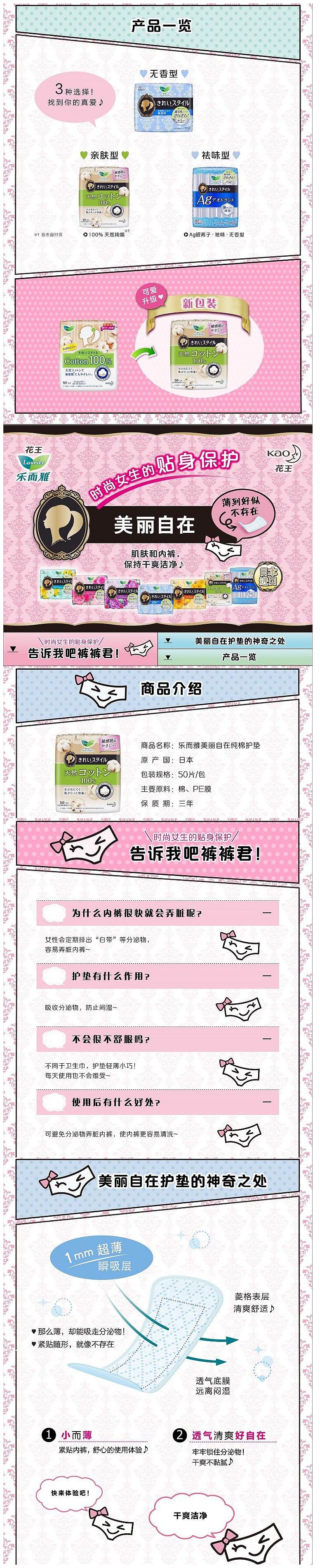 商品名称:花王乐而雅 天然棉透气护垫 14cm*50片 (单位:包)