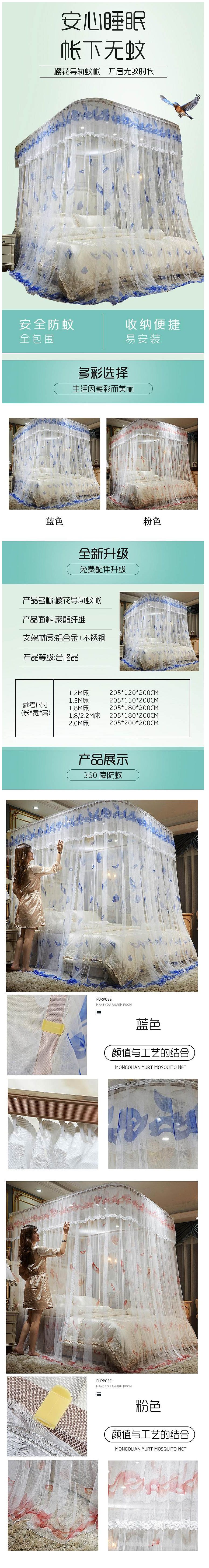 商品名称:伊伊爱D02000062樱花双导轨立地式方顶蚊帐150*200*205cm(单位:套)