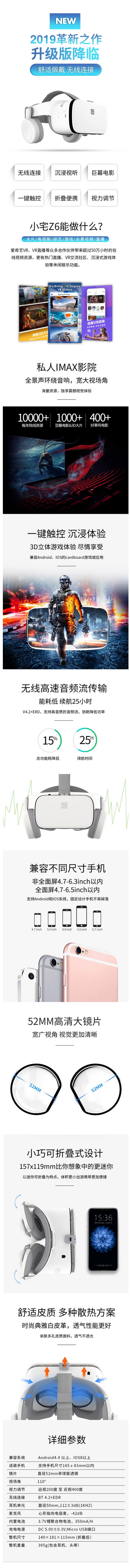 商品名称:小宅Z6/VR眼镜白色无线版(台)