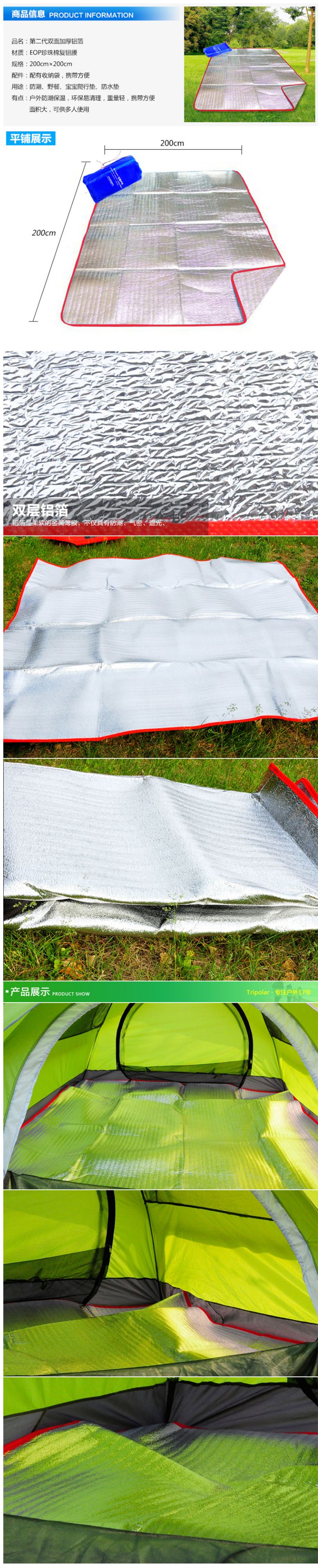 商品名称:三极户外(Tri-polar)TP1131箔防潮垫户外野营帐篷垫3-4多人加宽加厚2M防潮野餐沙滩防潮垫 银色200*200cm(个)