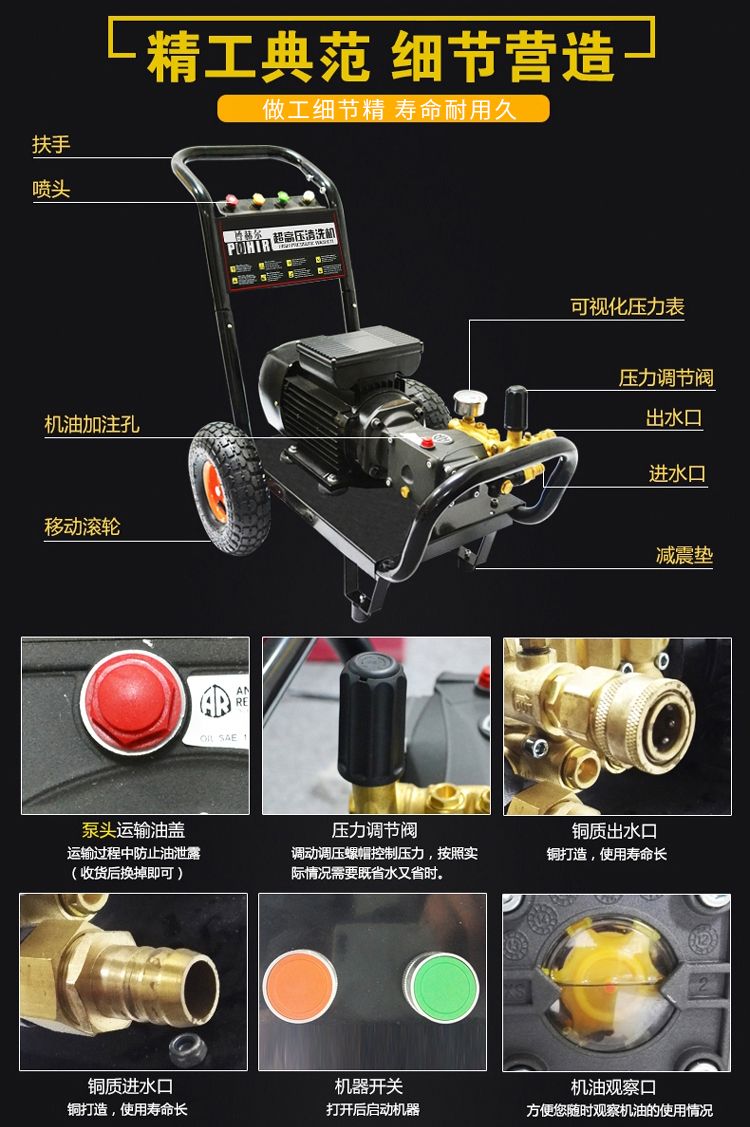 商品名称:博赫尔 洗车机 PH-1515 商用洗车机 3KW AR泵 150KG 220v高压