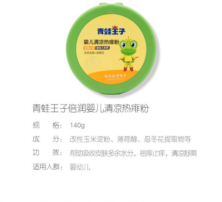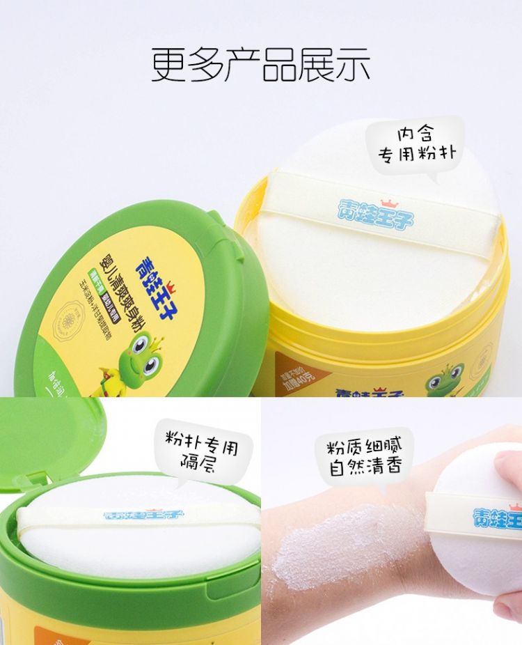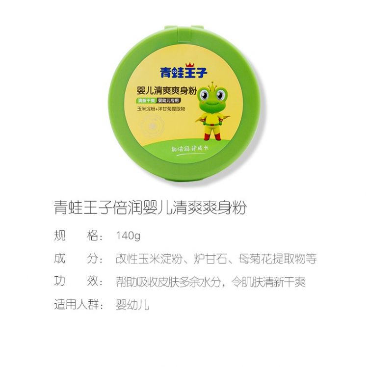 商品名称:青蛙王子 婴儿爽身粉 140g 清新干爽