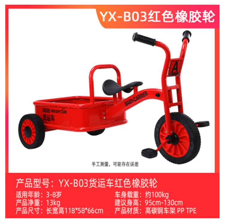 商品名称:幼博士 儿童幼教三轮车 YX-B03 118*58*66cm 不可折叠 高碳钢车架 红色