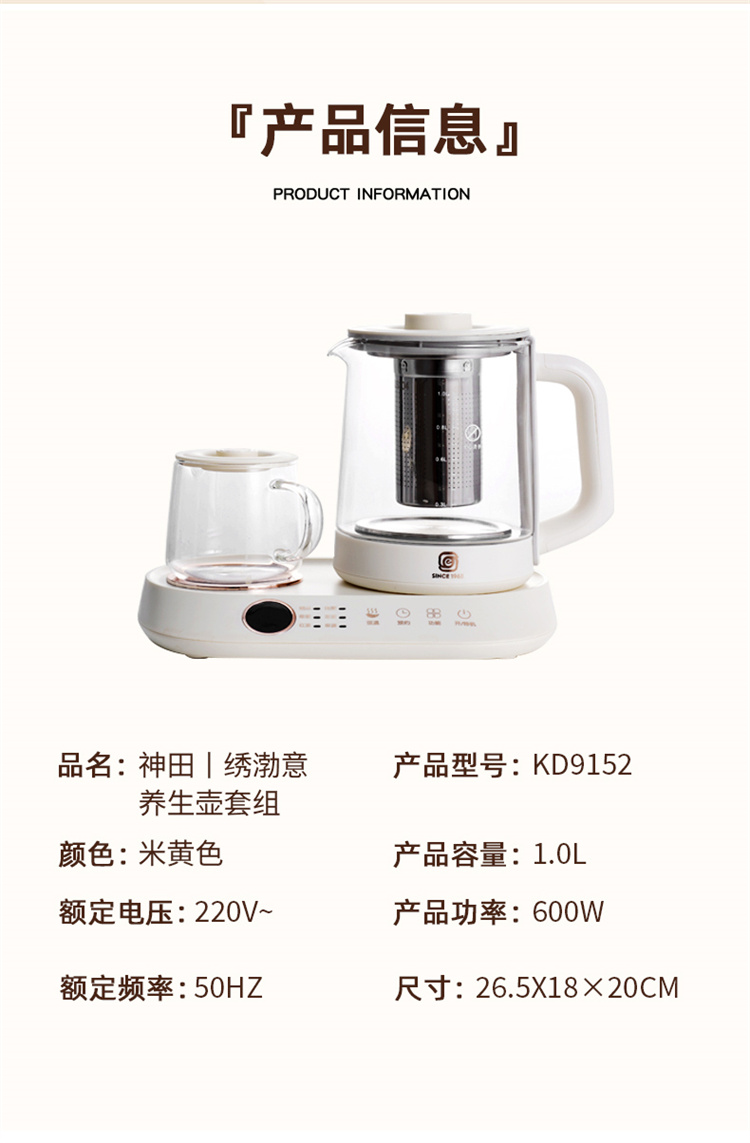商品名称:神田绣渤意 KD9152 养生壶套装1000ml