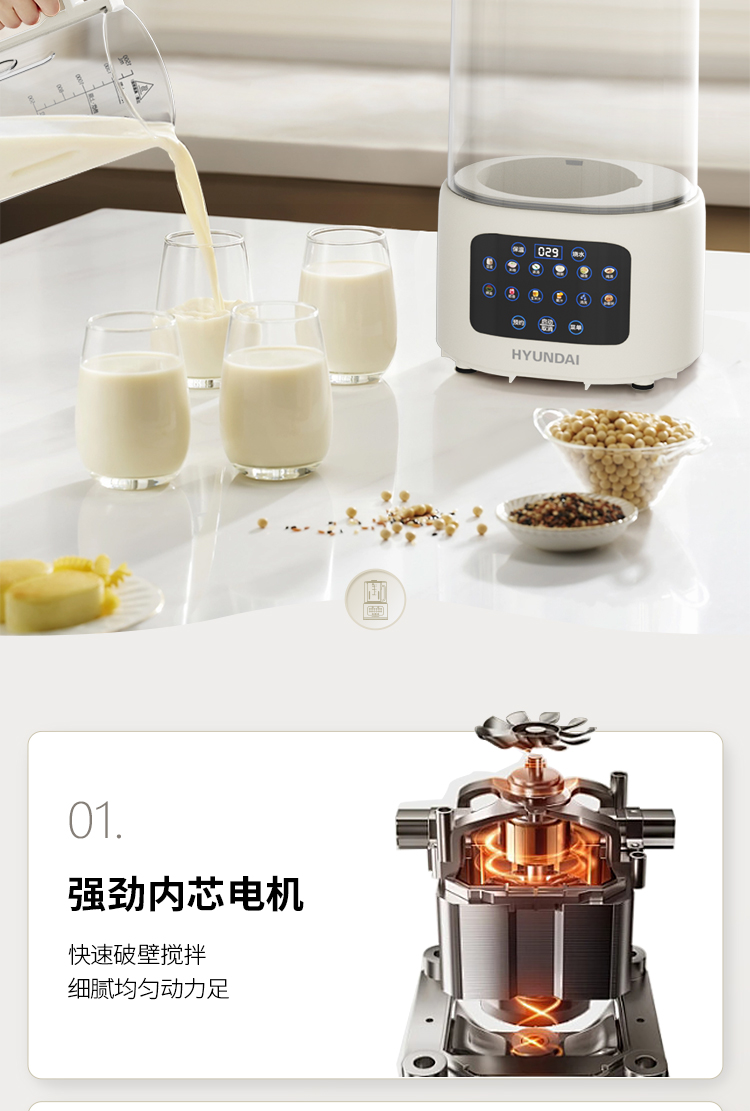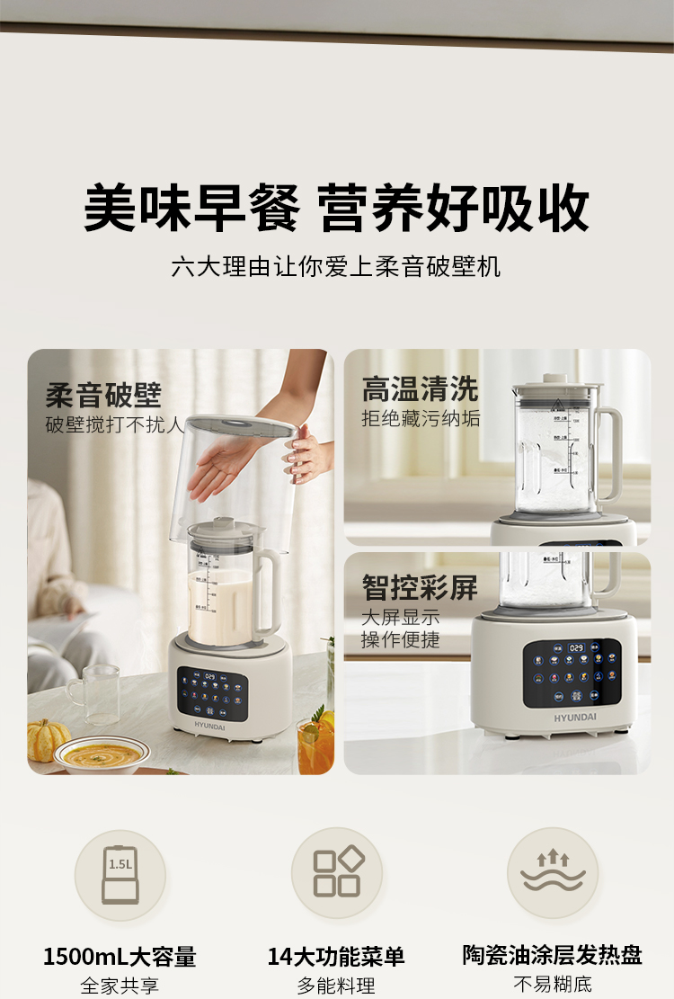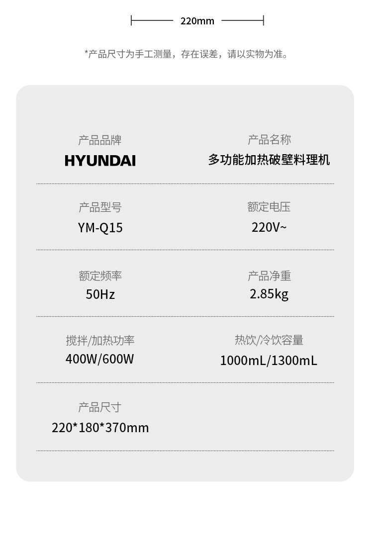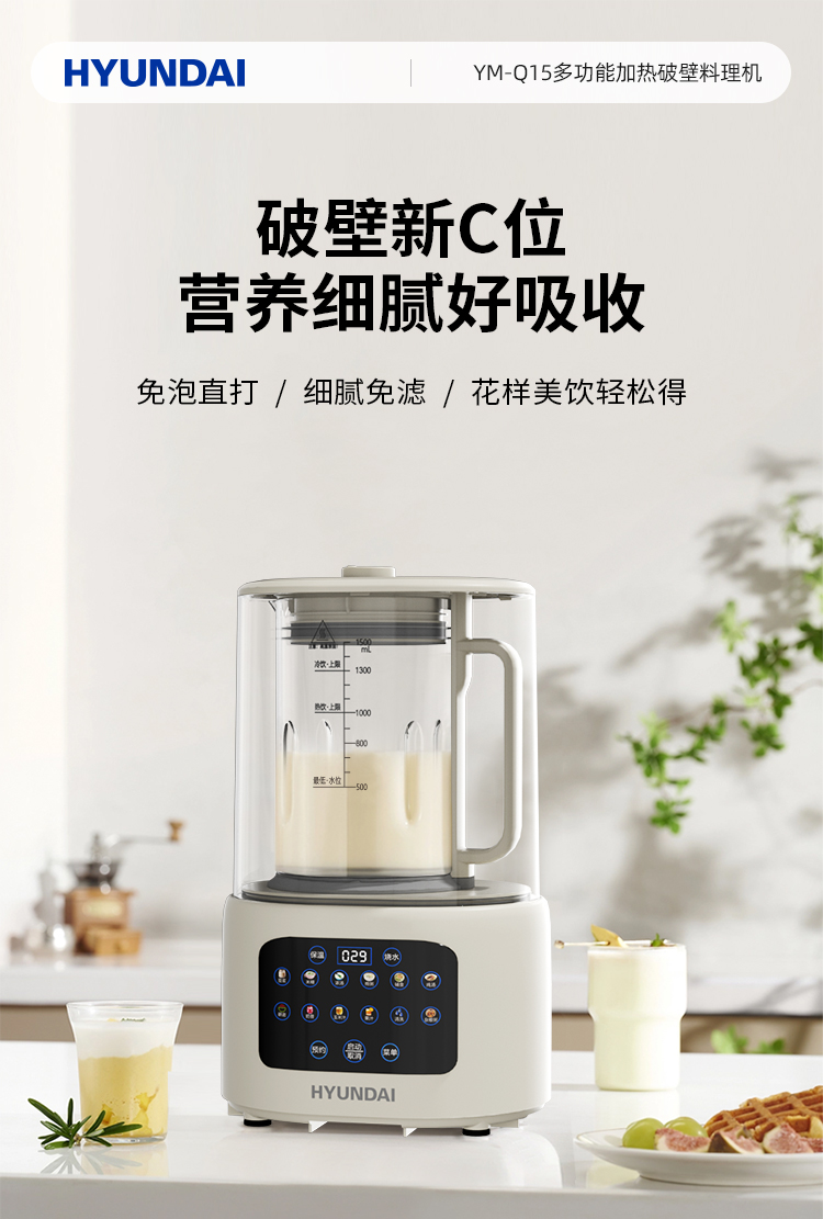 商品名称:HYUNDAI YM-Q15多功能加热破壁料理机