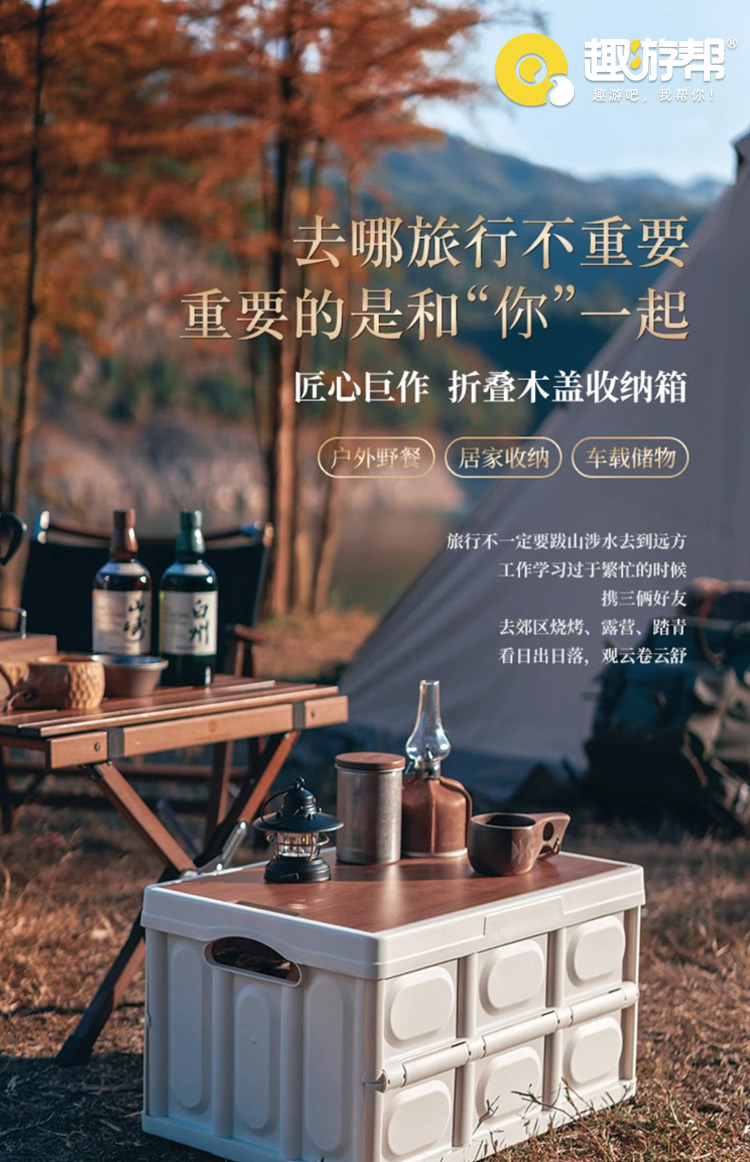 商品名称:趣游帮LQ515-15L木盖款折叠收纳箱15 优雅白