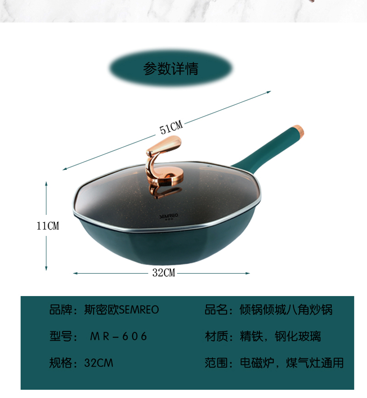 商品名称:斯密欧MR606倾锅倾城八角钻石炒锅