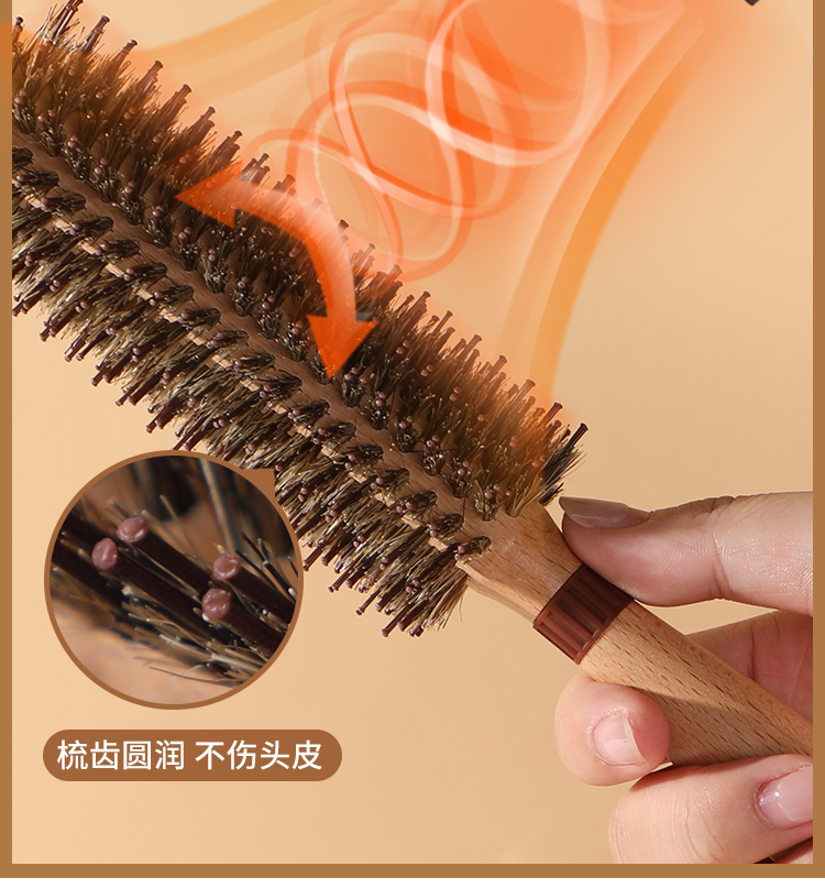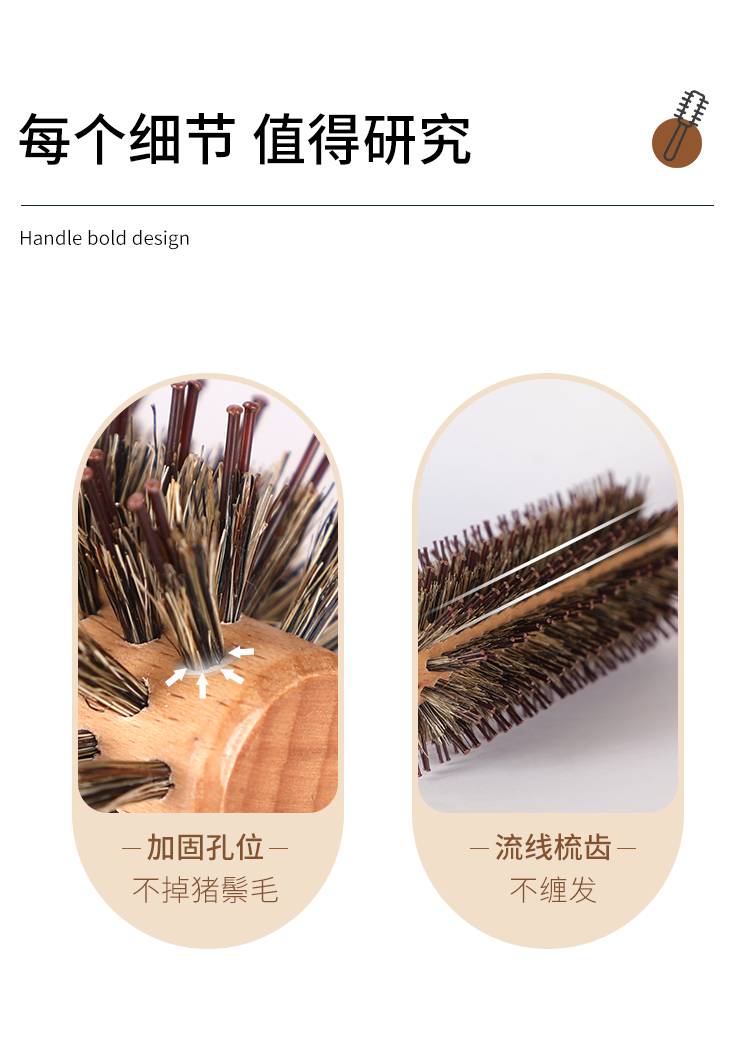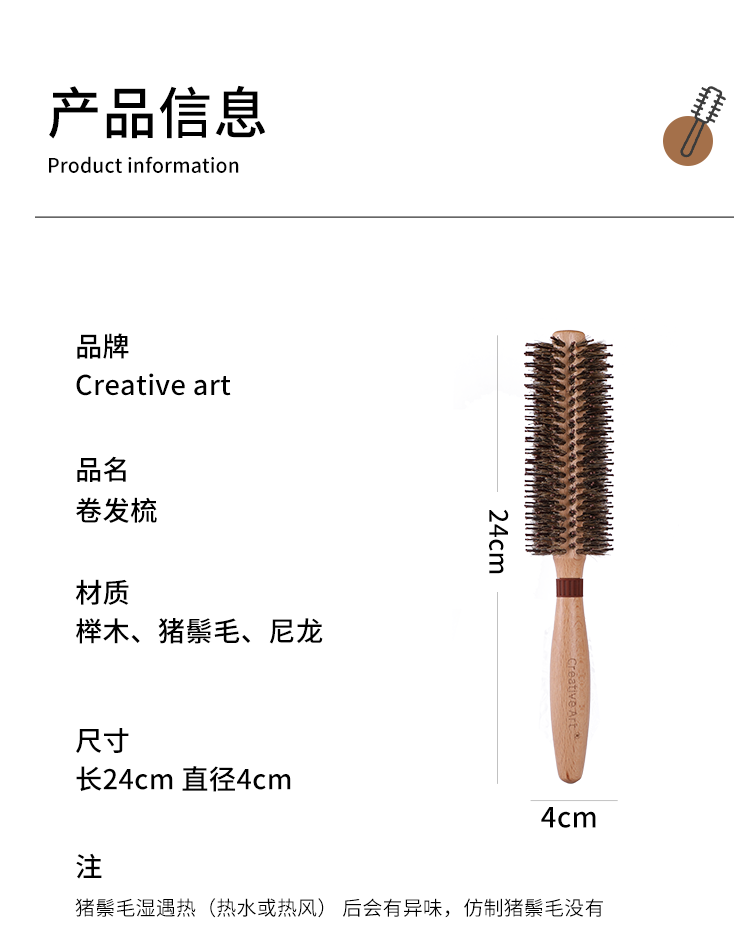 商品名称:Creative art猪鬃毛卷发直发造型梳CA0118榉木升级版(单位:把) 咖啡色