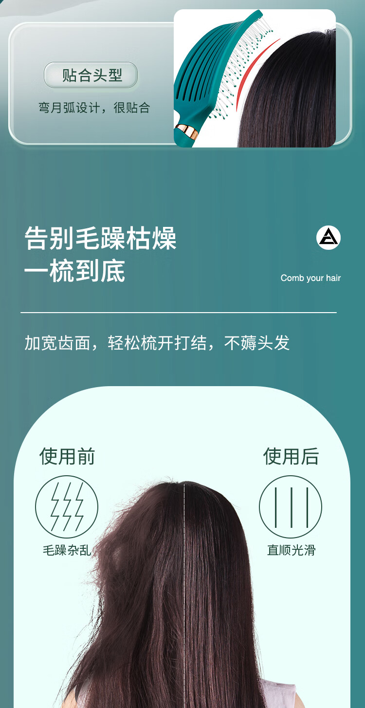 商品名称:Creative art女士高颅顶蓬松造型梳A0805-02(单位:把) 祖母绿