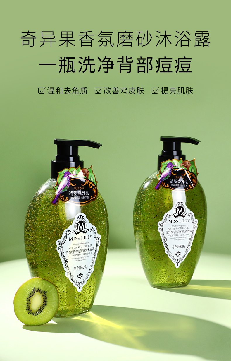 商品名称:蜜斯莉 奇异果香氛磨砂沐浴露520g (计价单位:瓶) 绿色