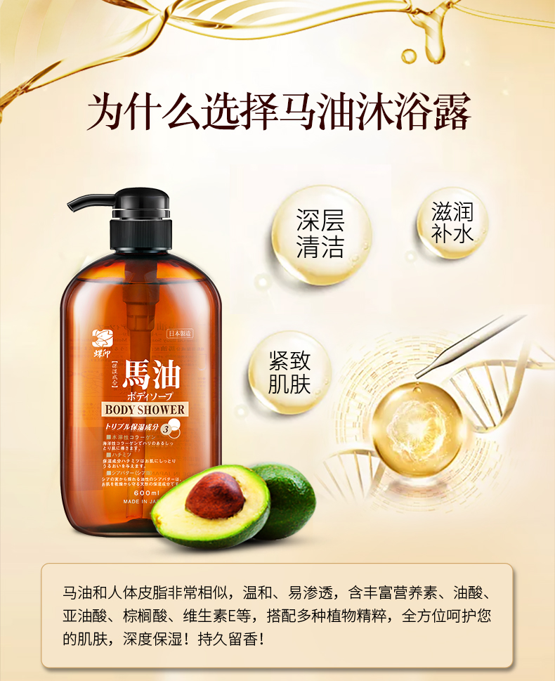 商品名称:蝶印 保湿精华马油沐浴露600mL(计价单位:瓶) 炫橙色