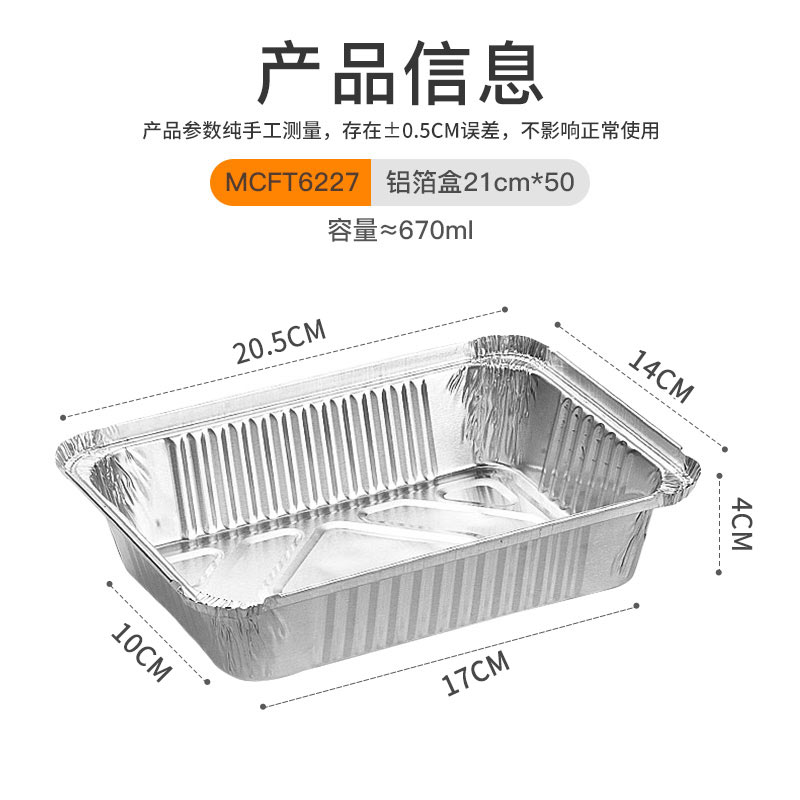 商品名称:美厨一次性铝箔盒21cm*50只 MCFT6227 白色