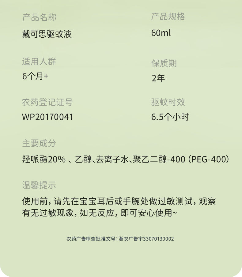 商品名称:戴可思驱蚊液60mlx2瓶(单位:瓶) 图片色