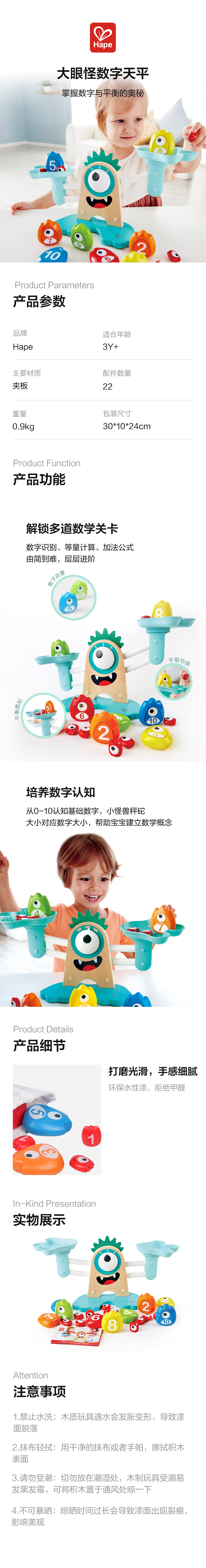 商品名称:Hape男孩玩具女孩数字逻辑启蒙大眼怪数字天平儿童生日礼物E0511 婴儿蓝