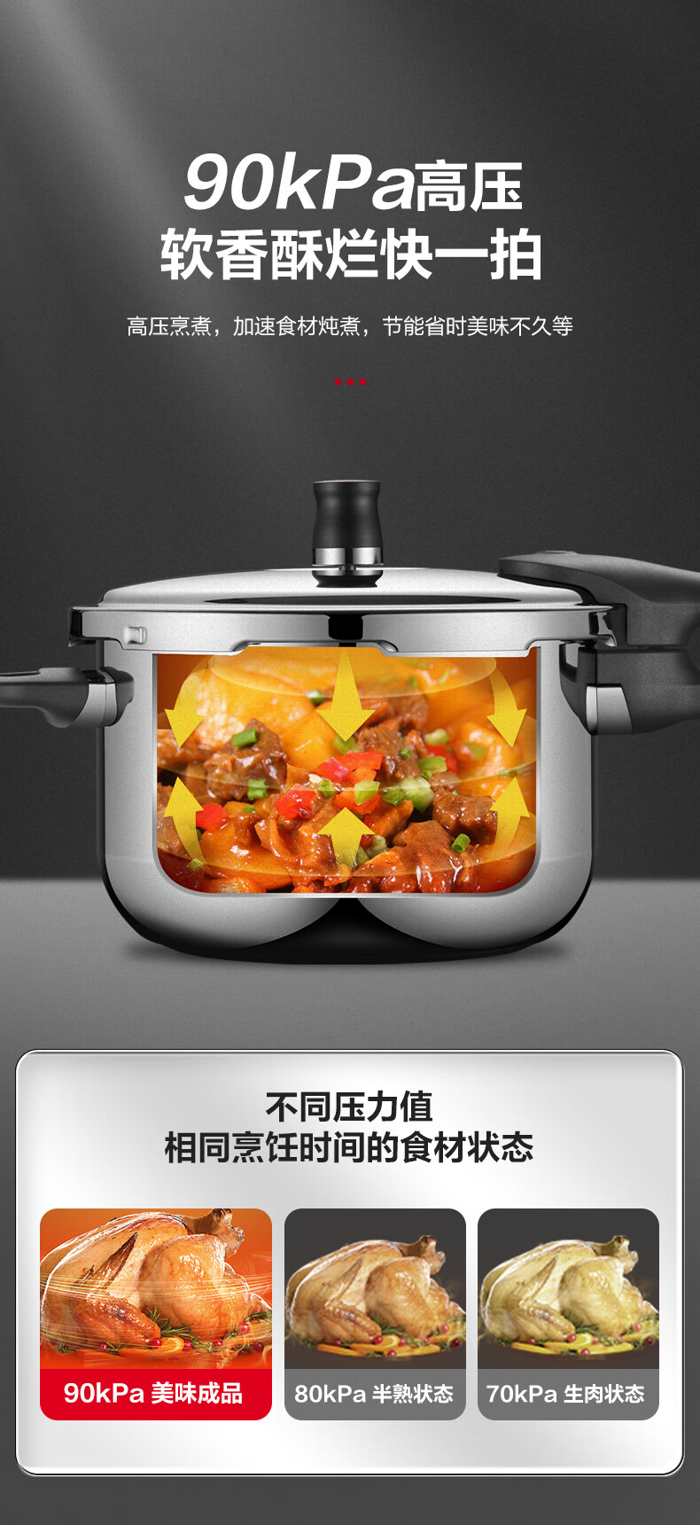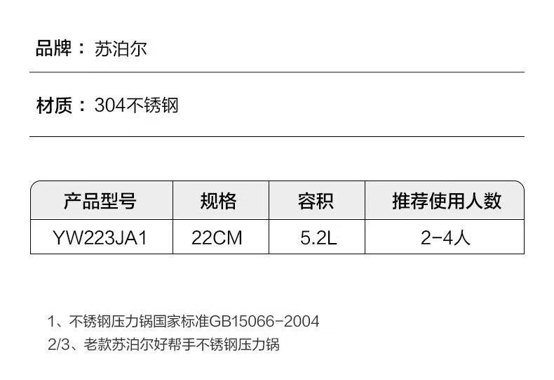商品名称:苏泊尔(SUPOR)5.2L·22cm好帮手不锈钢压力锅/YW223JA1(个) 不锈钢色