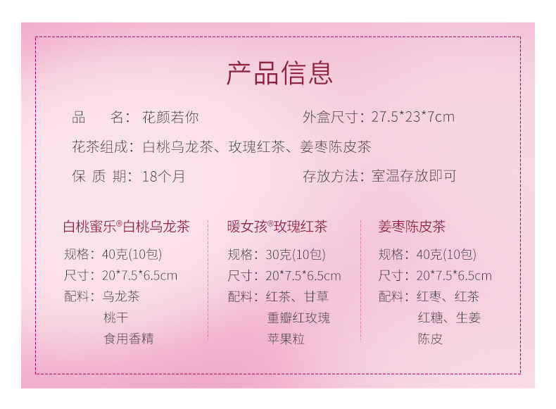 商品名称:艺福堂EZH0105 以美 花颜若你 花茶礼盒110g单位:盒 粉色