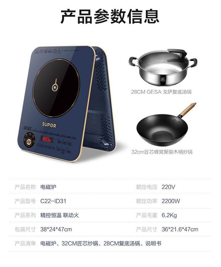 商品名称:苏泊尔 (SUPOR) 精控电磁炉2200W C22-ID31 台 蓝色