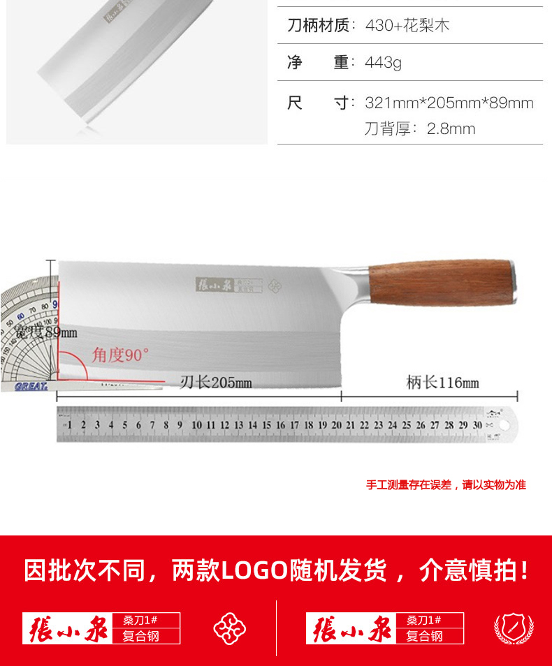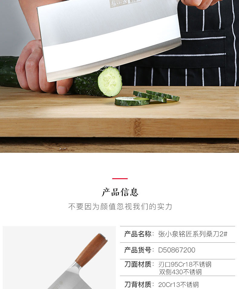 商品名称:张小泉 铭匠系列桑刀2# D50867200 不锈钢色