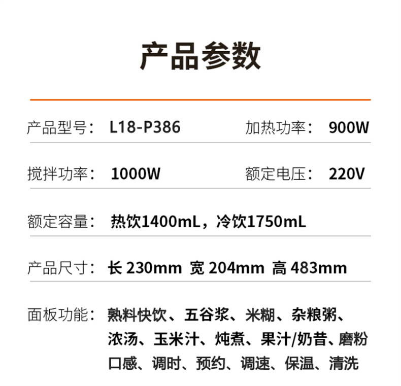 商品名称:九阳(Joyoung)破壁机家用榨汁机 L18-P386 1.75L(单位:台) 蓝色