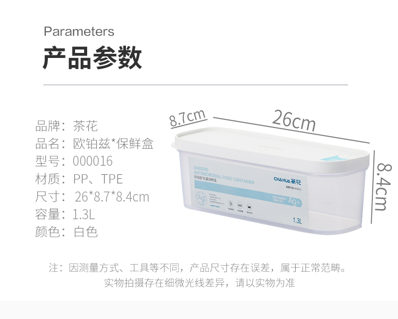 商品名称:茶花(CHAHUA)欧铂兹*保鲜盒1.3L 000016 (单位:个)白色