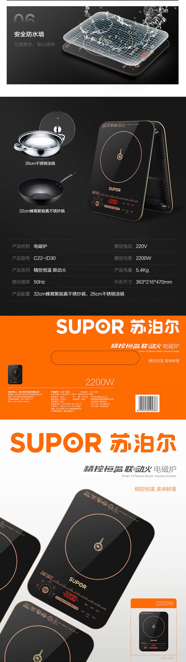商品名称:苏泊尔(SUPOR)2200w 超薄电磁炉 C22-ID30 台 黑色