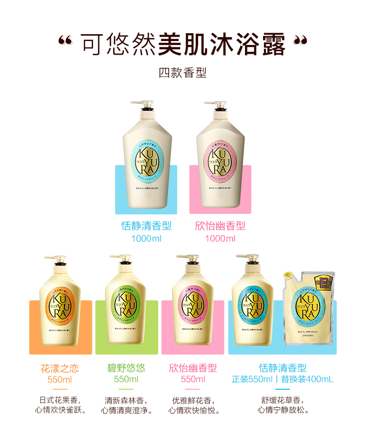 商品名称:资生堂可悠然美肌沐浴露550ml(碧野悠悠) 图片色